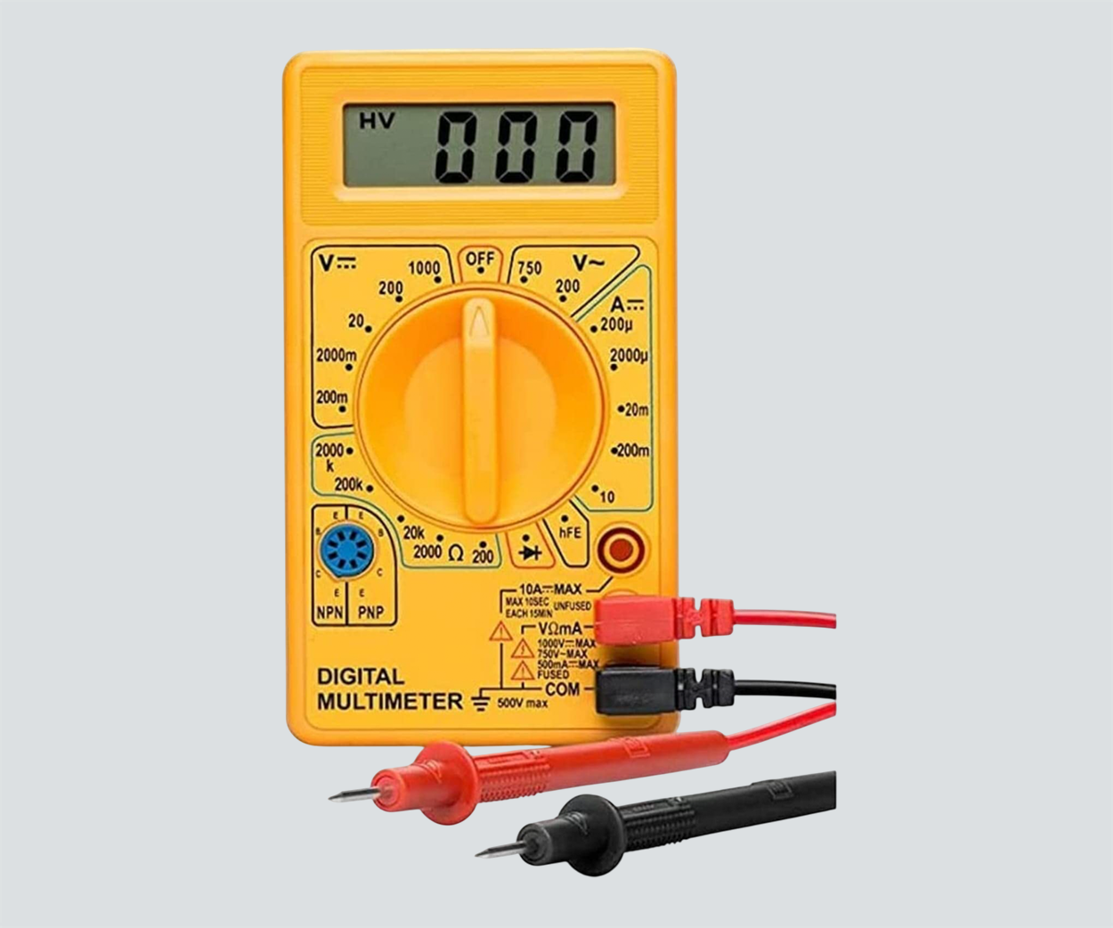 A Digital Multimeter (DMM) is a highly precise instrument used for measuring electrical parameters such as voltage, current, resistance, capacitance, frequency, and continuity. It features a digital display for easy reading and ensures high accuracy in both AC and DC measurements. Equipped with advanced functions like auto-ranging, data hold, and True RMS measurement, it is widely used in electrical troubleshooting, circuit testing, and industrial maintenance. Ideal for electricians, technicians, and engineers, a digital multimeter is an essential tool for diagnosing and maintaining electrical and electronic systems.